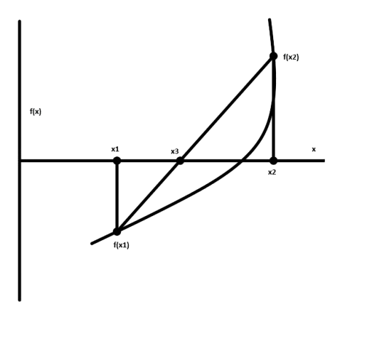 x3 = x1 - f(x1) * ((x2 - x1) / (f(x2) - f(x1))); ...(eq. 1)